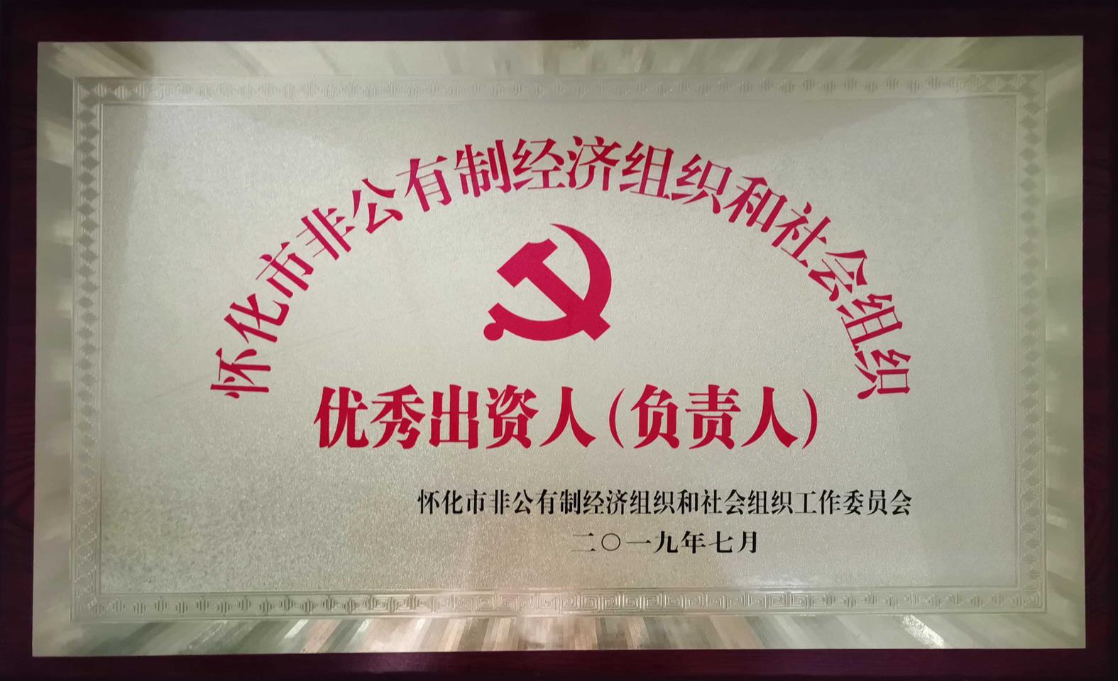 2019年7月被懷化市非公有制經(jīng)濟(jì)組織和社會組織工作委員會評為“懷化市非公有制經(jīng)濟(jì)組織和社會組織優(yōu)秀出資人(負(fù)責(zé)人)”